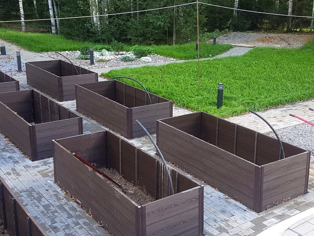 Восемь категорий изделий из древесно-полимерного композита. От террасной доски до грядок и уличных кухонь — всё от одного производителя.